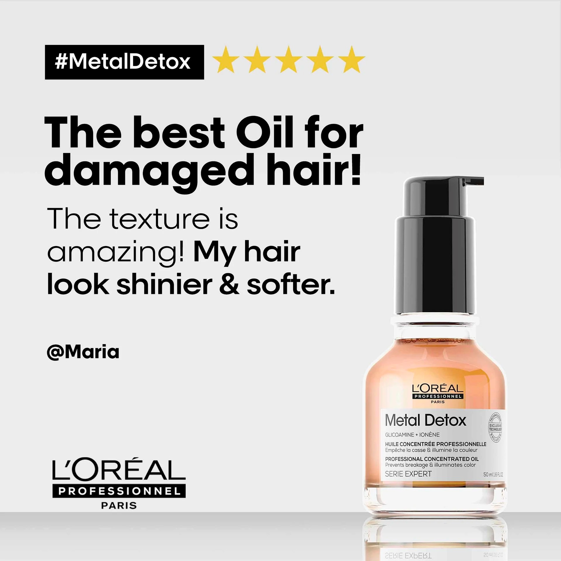 Producto concentrado con glicoamina, una molécula suficientemente pequeña para rastrear y neutralizar el metal en el interior de la fibra, este aceite concentrado protege el cabello del depósito de partículas.