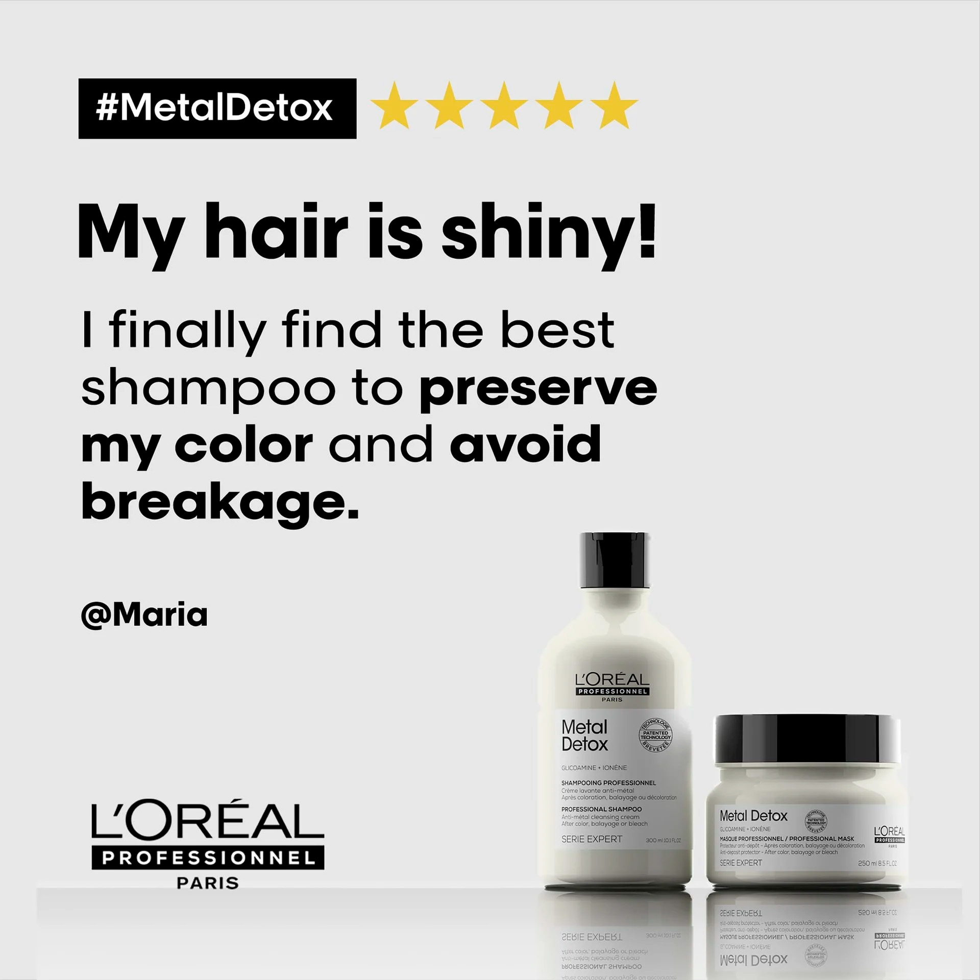 Utiliza después de Metal Detox shampoo de crema limpiadora antimetal, que elimina suavemente las partículas metálicas del cabello, para obtener la experiencia óptima de Metal Detox en casa.