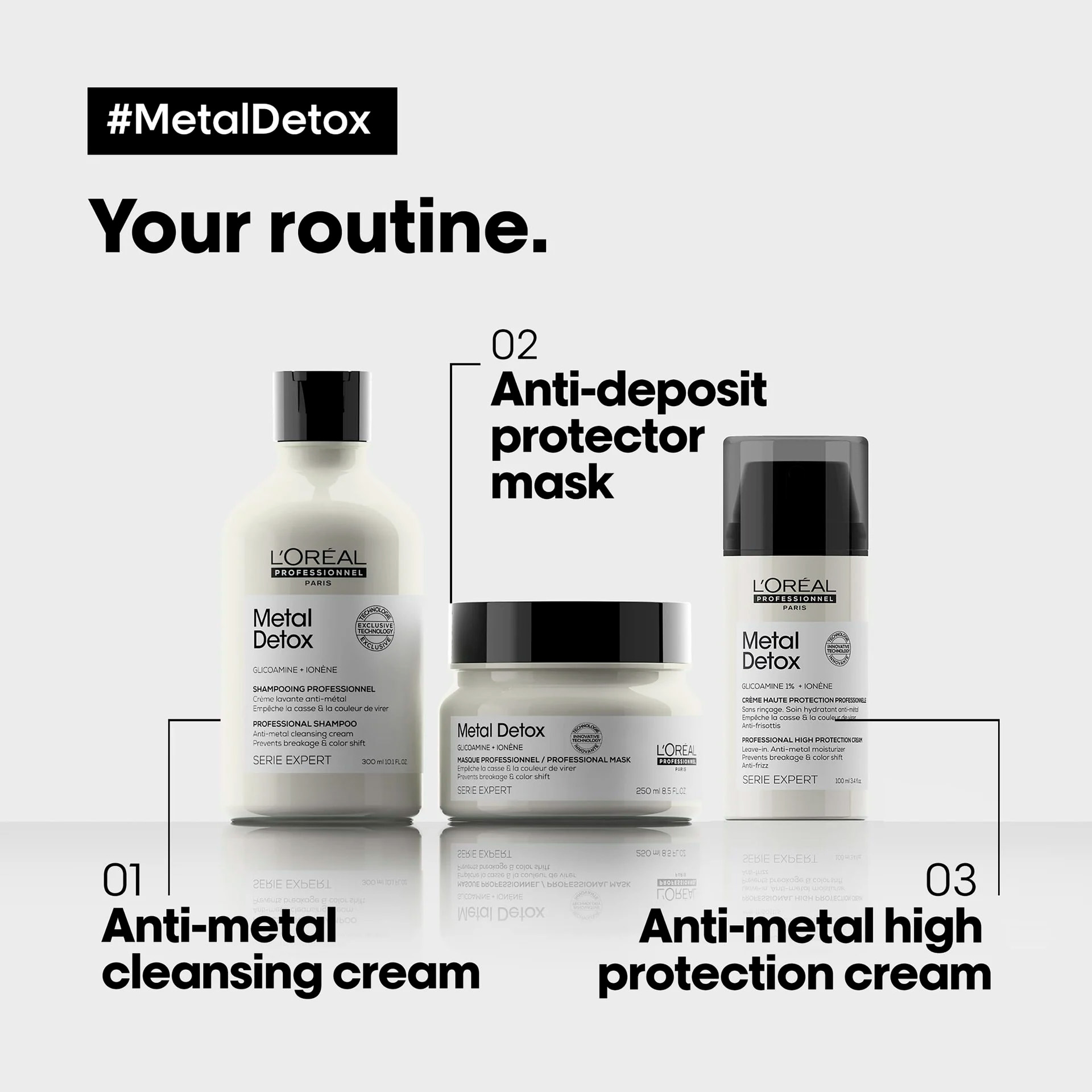 Para un resultado óptimo, utiliza después del shampoo de crema limpiadora antimetal.