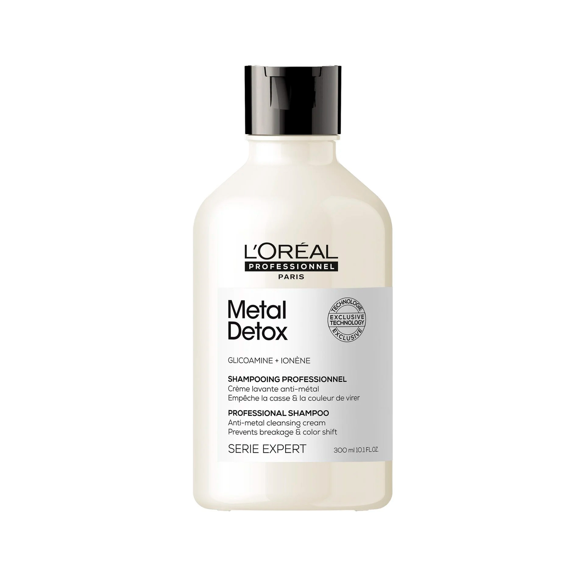 El shampoo de crema limpiadora antimetal elimina suavemente las partículas metálicas del cabello para evitar el quiebre y el cambio de color.